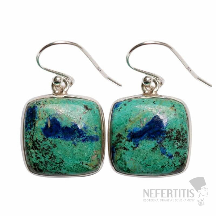 Azurit v malachitu náušnice stříbro Ag 925 E81