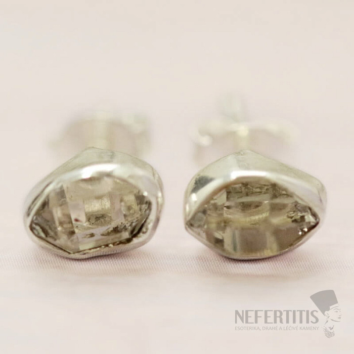Atraktivní stříbrné náušnice pecky s herkimer diamantem - vzácným druhem křišťálu vyzařují silnou energii a posiluje účinky ostatních kamenů. Ag 925. Nechte se okouzlit krásou tohotu unikátního křišťálu a třpytem světla na ploškách jeho krystalu. Herkimer diamant je unikátní v tom, že na rozdíl od ostatních křištálu jeho krystal tvoří "špici" na obou koncích krystalu. Díky tomu je nejlepším křišťálem pro výrobu šperků, navíc na trhu poměrně vzácný. Uvedená váha je celého páru. Kupujete přímo vyobrazený pár.