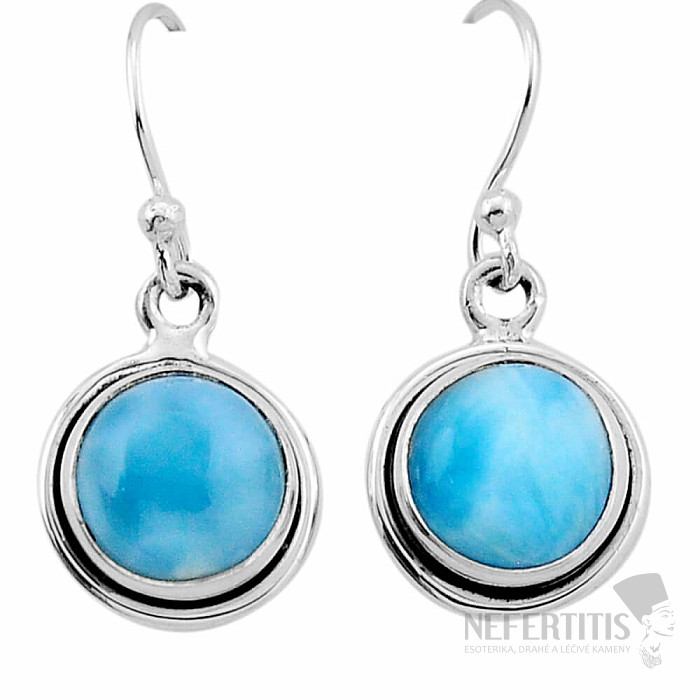 Elegantní stříbrné náušnice s kabošony larimaru, jenž připomíná hru slunečních paprsků na hladině moře. Ag 925. Uvedená váha je celého páru. Kupujete přímo vyobrazený šperk. Larimar, také zvaný jako „kámen delfínů“… více »