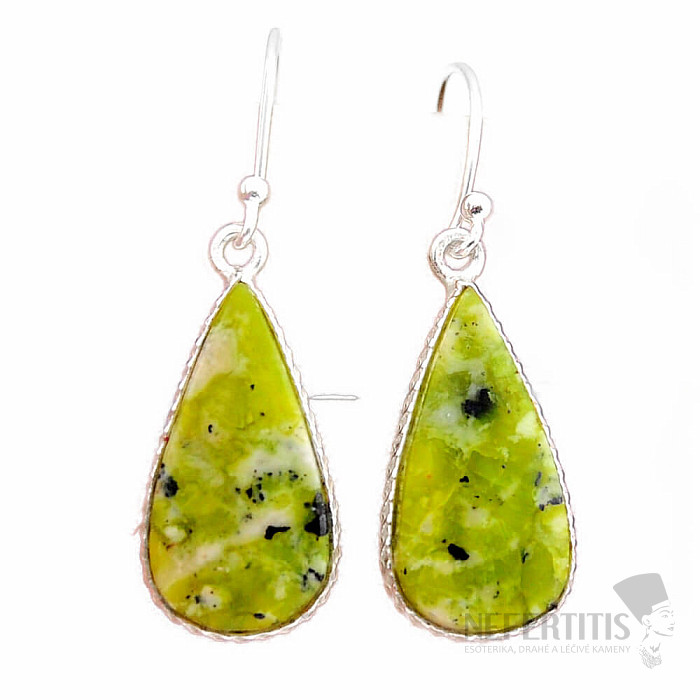 Elegantní a výrazné stříbrné náušnice s krásným lizarditem. Ag 925. Uvedená váha je celého páru. Kupujete přímo vyobrazený pár. Lizardit – "kámen přírody", má velmi silné léčebné vibrace, které pomáhají při meditaci a… více »