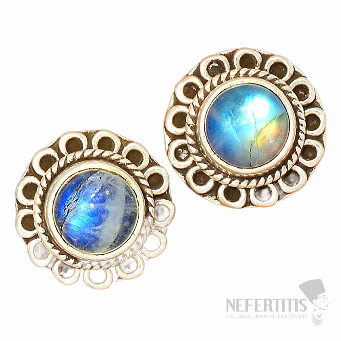 Stříbrné náušnice s nejkrásnějším ze všech druhů měsíčních kamenů - Bluefire duhovým měsíčním kamenem. Ag 925. Náušnice jsou nepřehlédnutelné zejména kvůli jejich výjimečně krásné a výrazné "hře duhy". Uvedená váha je celého páru. Kupujete přímo vyobrazený pár.