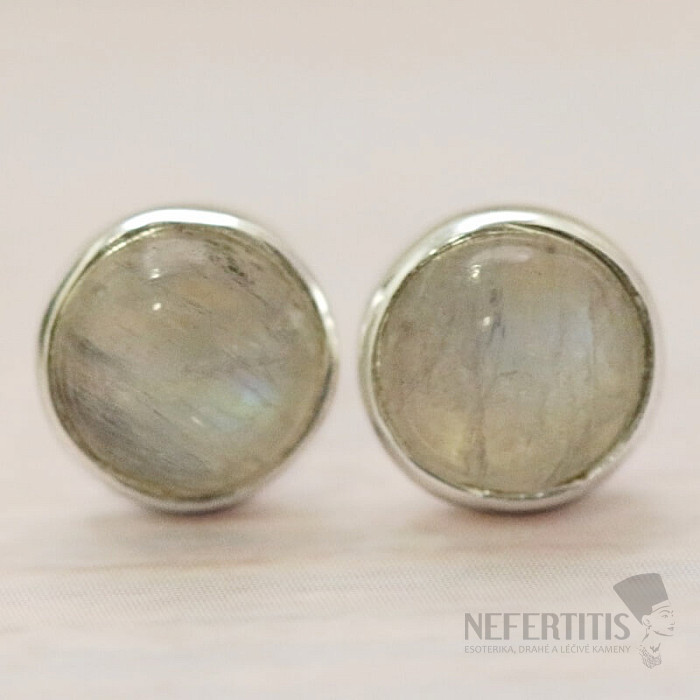 Měsíční kámen duhový náušnice pecky stříbro Ag 925 E1177