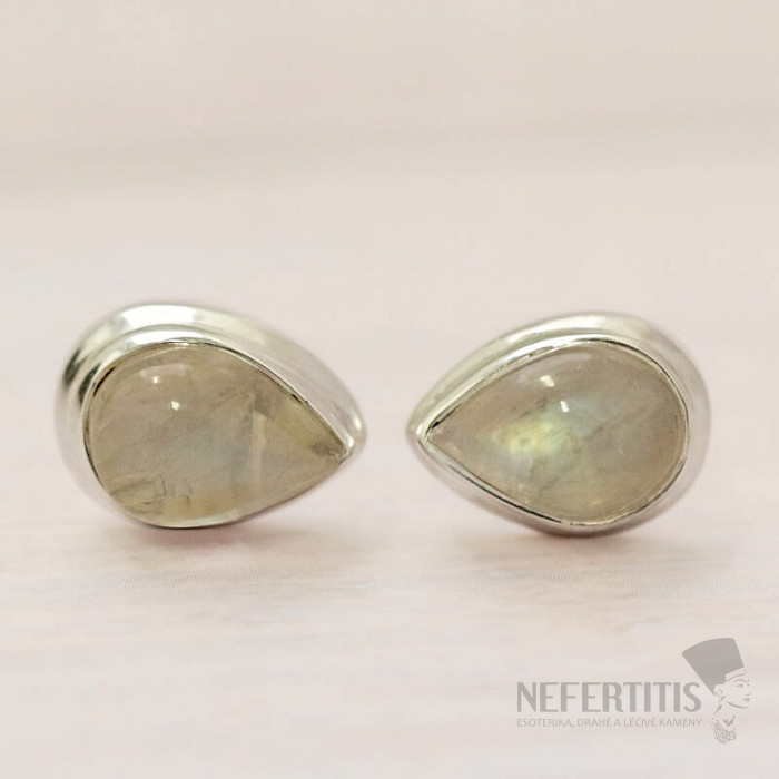 Měsíční kámen duhový náušnice pecky stříbro Ag 925 E1181