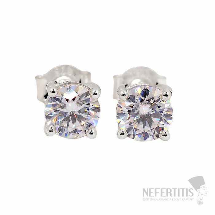 Moissanit je drahokam podobný diamantu, který má vysokou tvrdost (9,25 na Mohsově stupnici) a vynikající optické vlastnosti, jako je vysoký třpyt a barevný "oheň". Byl objeven v meteoritech, ale dnes se téměř výhradně vyrábí v laboratořích jako karbid křemíku. Díky svým vlastnostem a nižší ceně je oblíbenou a ekologickou alternativou k diamantu ve šperkařství. Ilustrativní vyobrazení. Uvedená váha je celého páru.