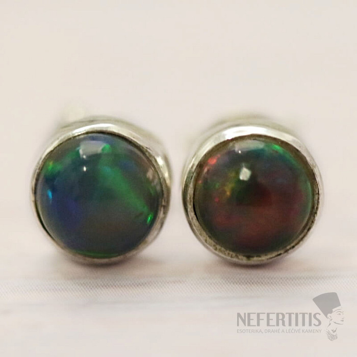 Opál černý etiopský náušnice pecky stříbro Ag 925 E77
