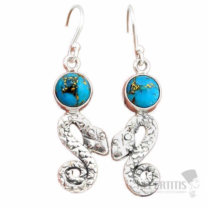 Výjimečné stříbrné náušnice s kousky tyrkysu, spojovaných mědí do působivých kabošonů tyrkysově modré barvy. Tento typ šperků získává ve světě na velké oblibě z důvodu stále rostoucí ceny jednolitých kusů přírodního tyrkysu. Tyrkys ve špercích nosí štěstí a podporuje lásku. Měď je od nepaměti používáná jako silný léčivý prostředek v mnoha kulturách po celém světě. První zmínka o léčivých účincích mědi je již na egyptském papyru z období 2600 až 2200 let před Kristem. Ag 925. Uvedená váha je celého páru. Kupujete přímo vyobrazený šperk.