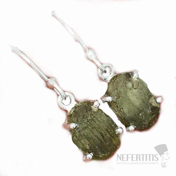 Stříbrné náušnice s vltavínem. Ag 925. Vltavín je považován za talisman štěstí. Kupujete přímo vyobrazený pár. Uvedená váha je celého páru.