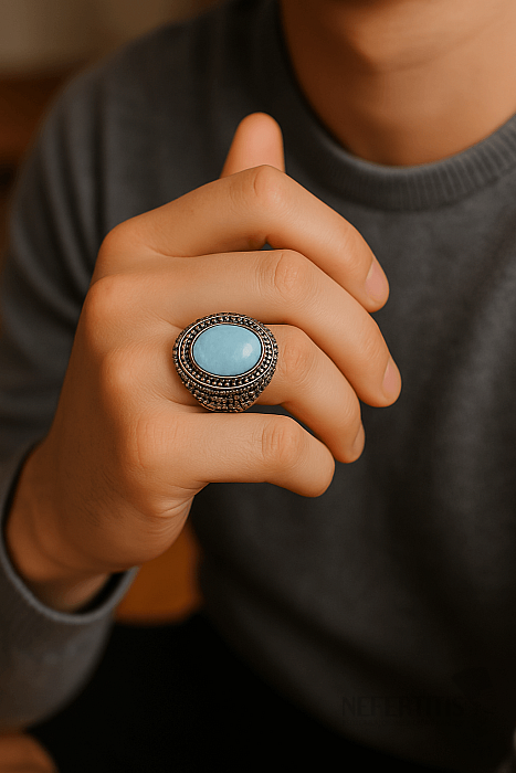 Díky své vzácnosti a původu je larimar považován za luxusní drahokam s hlubokou symbolikou, což dělá prsten s tímto kamenem skutečně jedinečným.