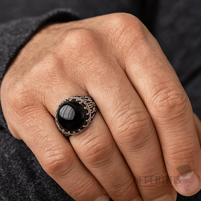 Onyx byl od starověku považován za ochranný kámen, který dodává sílu, stabilitu a vnitřní klid. V prstenech pro muže symbolizuje odhodlání, pevnost a schopnost překonat překážky.