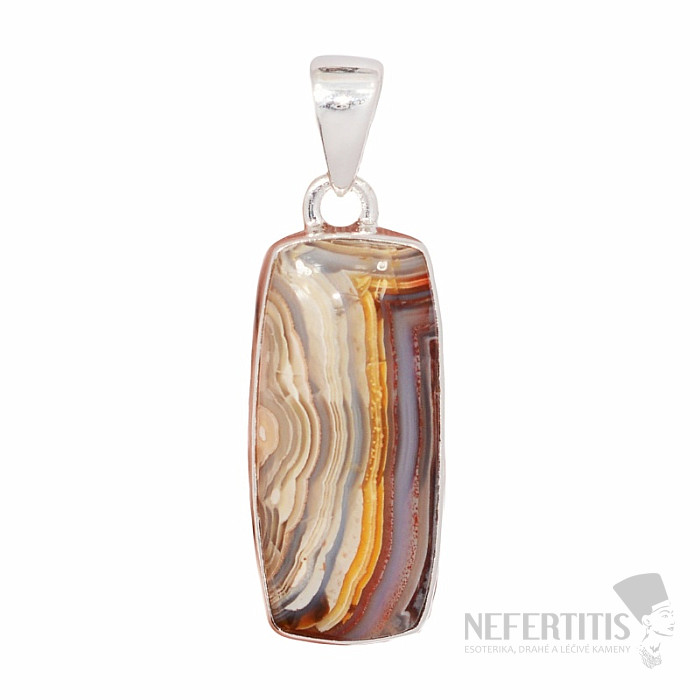 Stříbrný přívěsek se vzácným mexickým krajkovým Laguna Lace achátem. Achát krajkový je okouzlujícím šperkem, protože díky svým doslova spektakulárním barvám je Laguna lace achát nejvíce ceněný pruhovaný achát na světě. Tento přívěsek má nádhernou kresbu i tvar, které z něj činí nepřehlédnutelný skvost. Ag 925. Kupujete přímo vyobrazený šperk.