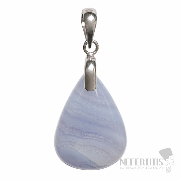 Stříbrný přívěsek s modrým krajkovým achátem je elegantní šperk, který zaujme jemnou kresbou a uklidňujícími odstíny světle modré barvy. Tento přírodní minerál je typický svými jemnými pruhy a krajkovou strukturou, díky nimž je každý kámen originální.