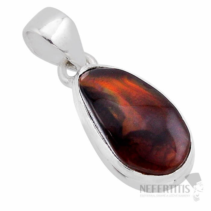 Krásný stříbrný přívěsek s velmi dekorativním a unikátním mexickým ohnivým achátem. Jedná se o kámen s tmavě červenohnědým podkladem, ve kterém se mohou objevovat záblesky oranžové, červené, zelené a zlaté, které se objevují jako živé plameny. Ohnivý achát byl jako talisman používán již ve starověku, a to před všemi možnými druhy nebezpečí, včetně silného větru a blesků a proti zuřivosti oceánu. Ag 925. Kupujete přímo vyobrazený šperk.