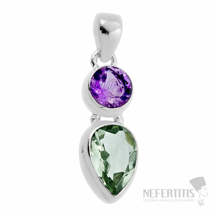Unikátní přívěsek s broušeným zeleným ametystem - prasiolitem a fialovým ametystem. Nechte se okouzlit jemnou a především nezvyklou zelenou barvou ametystu. Tento unikátní šperk vynika svou neobvyklou barvou ametystu. Zelená barva kamene z tohoto přívěsku činí vzácný a nepřehlédnutelný skvost. Zelený ametyst se jako takový v přírodě nenachází, obdobně jako většina citrínů na trhu, vzniká úpravou ametystových krystalů. Poprvé byl tento kámen uveden na trh v Americe kolem roku 1950, kdy dostal název prasiolit, jenž je spojením řeckých slov pro pažitkově zelenou a kámen. Zelené ametysty pocházejí většinou z Brazílie, ze známých ametystových lokalit jako Minas Gerais a Rio Grande do Sul. Ag 925. Kupujete přímo vyobrazený šperk.