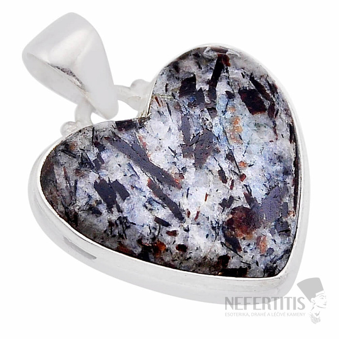 Nádherný přívěsek va tvaru srdce ze vzácného astrofylitu. Ag 925. Kupujete přímo vyobrazený šperk.