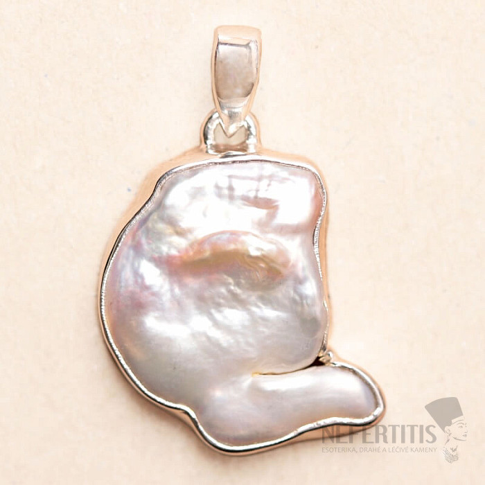 Krásný přívěsek ze stříbra s velkou sladkovodní Biwa perlou. Ag 925. Nesmírně elegantní šperk, který každého okouzlí a nikdo jej nepřehlédne. Kupujete přímo vyobrazený šperk.