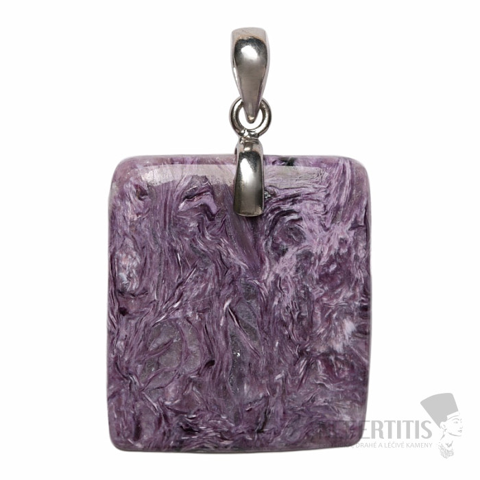 Stříbrný přívěsek s čaroitem je výrazný šperk z minerálu, který zaujme svou jedinečnou fialovou barvou a charakteristickou vláknitou kresbou. Čaroit je vzácný minerál známý svými odstíny fialové, levandulové a purpurové barvy, které se často prolínají v zajímavých přírodních vzorech. Každý kámen je originální a vytváří neopakovatelný vzhled.