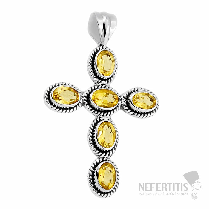 Uchvacující a výjimečný stříbrný přívěsek ve tvaru kříže s broušenými citríny. Díky ploškám výbrusů se šperk krásně třpytí, zejména při dopadu světla. Ag 925. Kupujete přímo vyobrazený šperk.