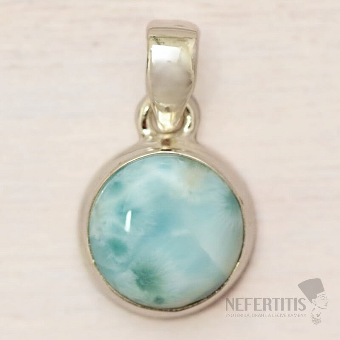 Půvabný přívěsek ze stříbra s krásným a kvalitním kabošonem vzácného larimaru, jenž připomíná hru slunečních paprsků na hladině moře. Šperk je ručně vyroben, larimar je pečlivě vybrán se zřetelně modrým vybarvením. Ag 925. Kupujete přímo vyobrazený šperk.