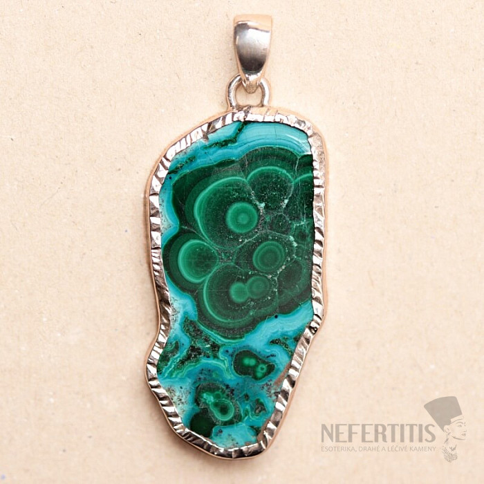 Malachit v chryzokolu plátek přívěsek stříbro Ag 925 P15
