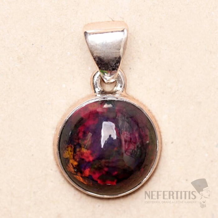 Atraktivní stříbrný přívěsek s kabošonem vzácného černého opálu s krásnou hrou barev v sytě černém kameni. Ag 925. Chalama opál je vzácnou černou variantou australských opálů a pochází z oblasti severozápadního města známého jako Lightning Ridge v Austrálii. Mimořádně krásný a nepříliš běžný šperk. Kupujete přímo vyobrazený šperk.