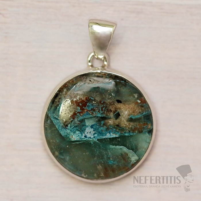 Půvabný stříbrný přívěsek se vzácným a sběratelsky ceněným přírodním Quantum quattro. Ag 925. Quantum quattro je kombinací čtyř minerálů - shattuckitu, dioptasu, malachitu a chryzokolu. Každý šperk je originální, neopakovatelný a díky barevné kombinaci a uspořádání minerálů podněcuje fantazii, připomíná pohled na Zemi z ptačí perspektivy. Budete mít krásný šperk, který nikdo nepřehlédne, vhodný pro různé příležitosti. Kupujete přímo vyobrazený šperk.