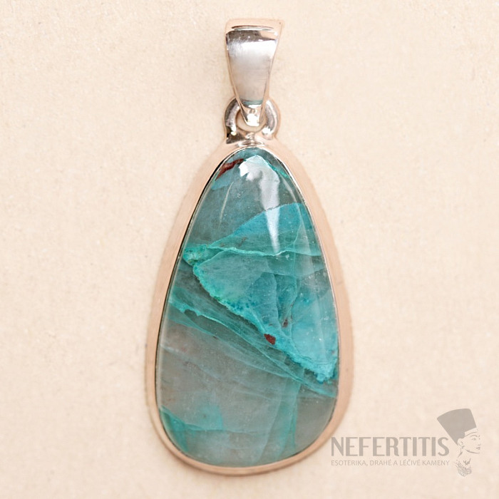 Půvabný stříbrný přívěsek se vzácným a sběratelsky ceněným přírodním Quantum quattro. Ag 925. Quantum quattro je kombinací čtyř minerálů - shattuckitu, dioptasu, malachitu a chryzokolu. Každý šperk je originální, neopakovatelný a díky barevné kombinaci a uspořádání minerálů podněcuje fantazii, připomíná pohled na Zemi z ptačí perspektivy. Budete mít krásný šperk, který nikdo nepřehlédne, vhodný pro různé příležitosti. Kupujete přímo vyobrazený šperk.