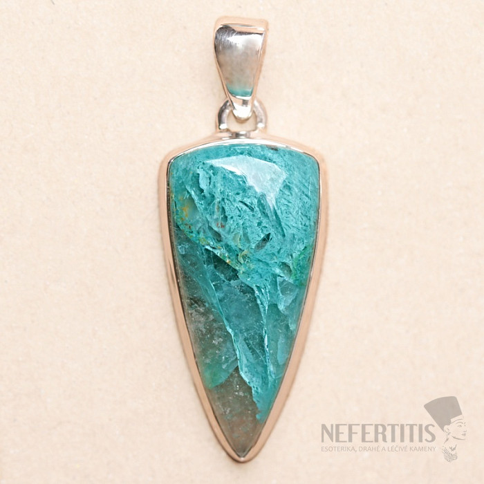 Půvabný stříbrný přívěsek se vzácným a sběratelsky ceněným přírodním Quantum quattro. Ag 925. Quantum quattro je kombinací čtyř minerálů - shattuckitu, dioptasu, malachitu a chryzokolu. Každý šperk je originální, neopakovatelný a díky barevné kombinaci a uspořádání minerálů podněcuje fantazii, připomíná pohled na Zemi z ptačí perspektivy. Budete mít krásný šperk, který nikdo nepřehlédne, vhodný pro různé příležitosti. Kupujete přímo vyobrazený šperk.