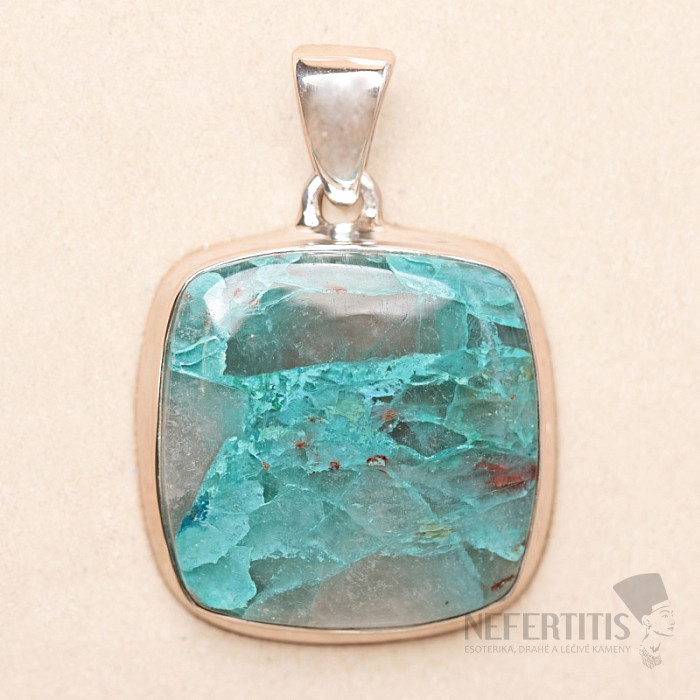 Půvabný stříbrný přívěsek se vzácným a sběratelsky ceněným přírodním Quantum quattro. Ag 925. Quantum quattro je kombinací čtyř minerálů - shattuckitu, dioptasu, malachitu a chryzokolu. Každý šperk je originální, neopakovatelný a díky barevné kombinaci a uspořádání minerálů podněcuje fantazii, připomíná pohled na Zemi z ptačí perspektivy. Budete mít krásný šperk, který nikdo nepřehlédne, vhodný pro různé příležitosti. Kupujete přímo vyobrazený šperk.