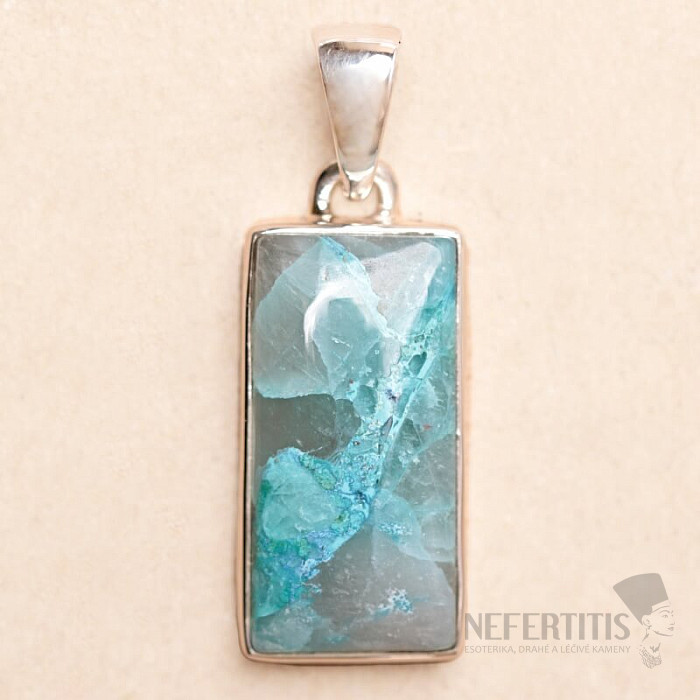 Půvabný stříbrný přívěsek se vzácným a sběratelsky ceněným přírodním Quantum quattro. Ag 925. Quantum quattro je kombinací čtyř minerálů - shattuckitu, dioptasu, malachitu a chryzokolu. Každý šperk je originální, neopakovatelný a díky barevné kombinaci a uspořádání minerálů podněcuje fantazii, připomíná pohled na Zemi z ptačí perspektivy. Budete mít krásný šperk, který nikdo nepřehlédne, vhodný pro různé příležitosti. Kupujete přímo vyobrazený šperk.