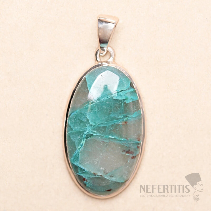 Půvabný stříbrný přívěsek se vzácným a sběratelsky ceněným přírodním Quantum quattro. Ag 925. Quantum quattro je kombinací čtyř minerálů - shattuckitu, dioptasu, malachitu a chryzokolu. Každý šperk je originální, neopakovatelný a díky barevné kombinaci a uspořádání minerálů podněcuje fantazii, připomíná pohled na Zemi z ptačí perspektivy. Budete mít krásný šperk, který nikdo nepřehlédne, vhodný pro různé příležitosti. Kupujete přímo vyobrazený šperk.