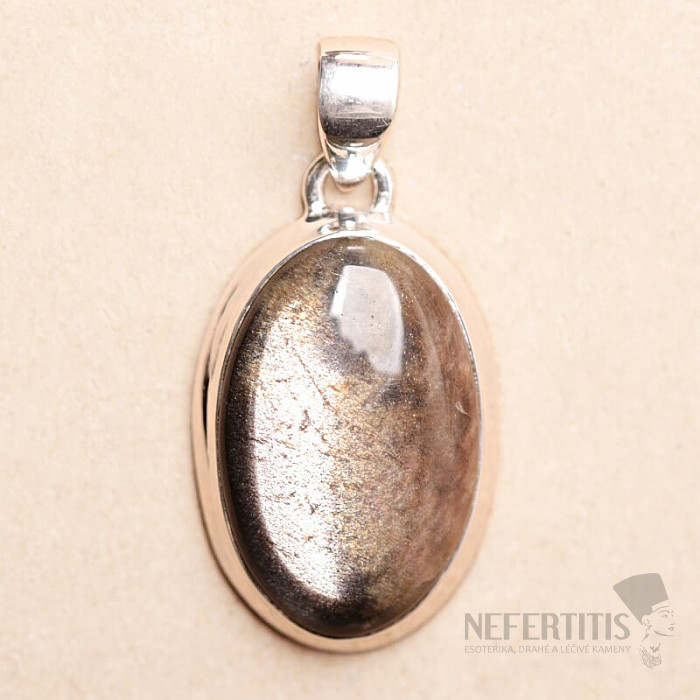 Sluneční kámen černý přívěsek stříbro Ag 925 P327