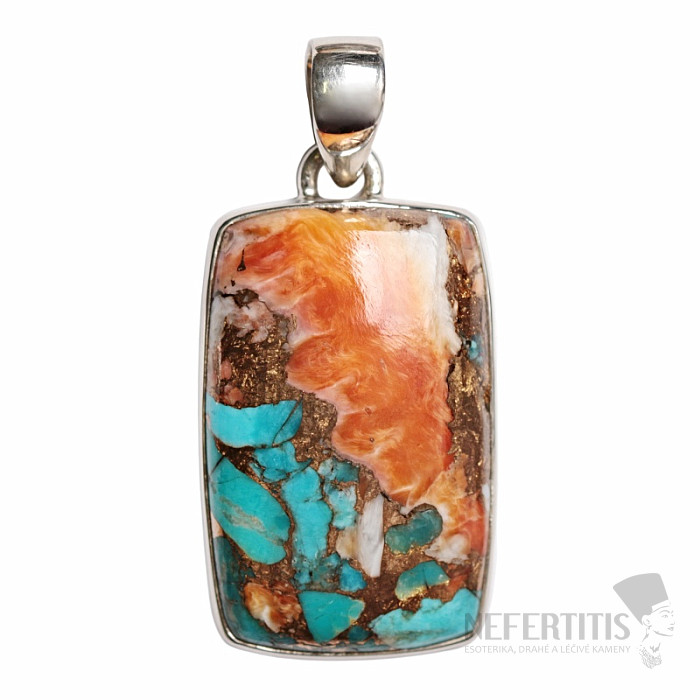 Unikátní stříbrný přívěsek z kousků lastur. Ag 925. Šperk je vyroben z barevných částí lastur spojených dohromady mědí do působivého kabošonu. Každá mozaika je originální barvami a tím i kresbou. Nádherná kombinace barev dává šperku originalitu a nepřehlédnutelnost. Kupujete přímo vyobrazený šperk.