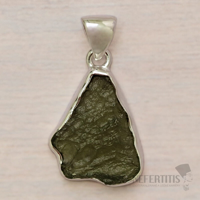 Stříbrný přívěsek s vltavínem. Ag 925. Vltavín je považován za talisman štěstí. Kupujete přímo vyobrazený šperk.