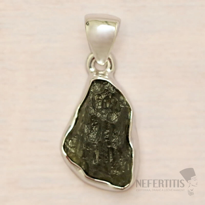 Stříbrný přívěsek s vltavínem. Ag 925. Vltavín je považován za talisman štěstí. Kupujete přímo vyobrazený šperk.