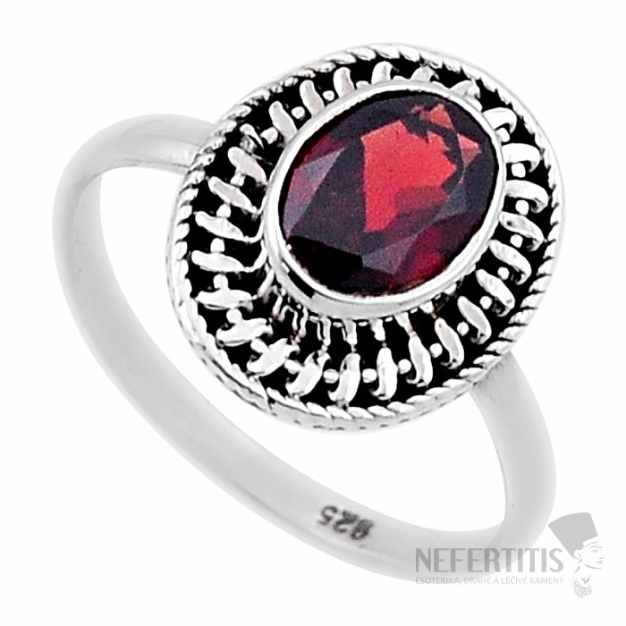Granát broušený prsten stříbro Ag 925 47130
