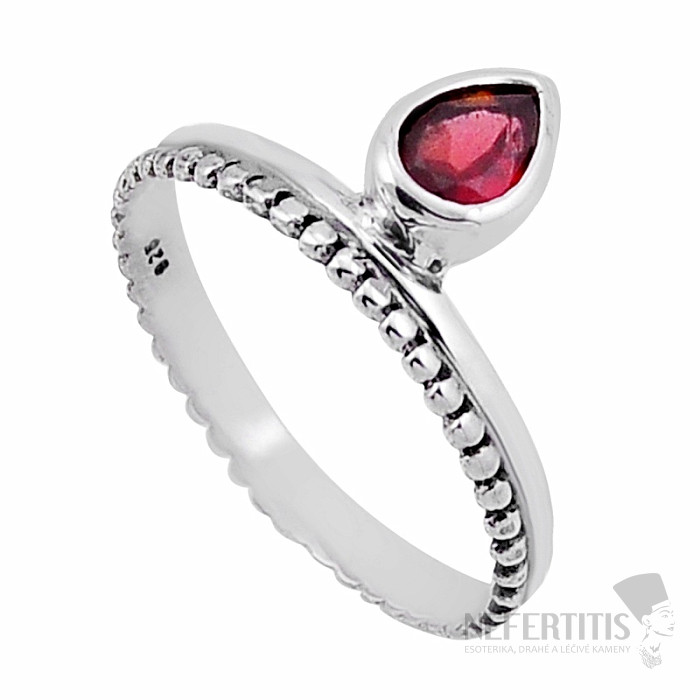 Stříbrný prsten s broušeným granátem. Ag 925. Výrazný prsten, jehož krásu umocňuje třpyt světla na jednotlivých broušených ploškách. Velikost kamene cca 0,7 cm. Kupujete přímo vyobrazený šperk.