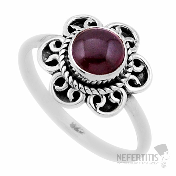 Stříbrný prsten s kabošonem granátu. Ag 925. Velikost granátu je cca 0,6 cm. Kupujete přímo vyobrazený šperk. Neznáte svou velikost prstenu? Jak ji změřit se dočtete zde. Granát je kamenem se silnou schopností dodávat… více »