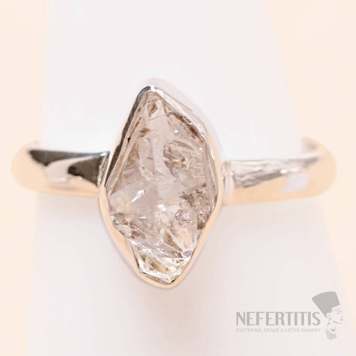 Nádherný prsten se vzácným křišťálovým herkimer "diamantem" ve stříbře. Velikost kamene cca 1,1 cm. Ag 925. Kupujete přímo vyobrazený šperk.