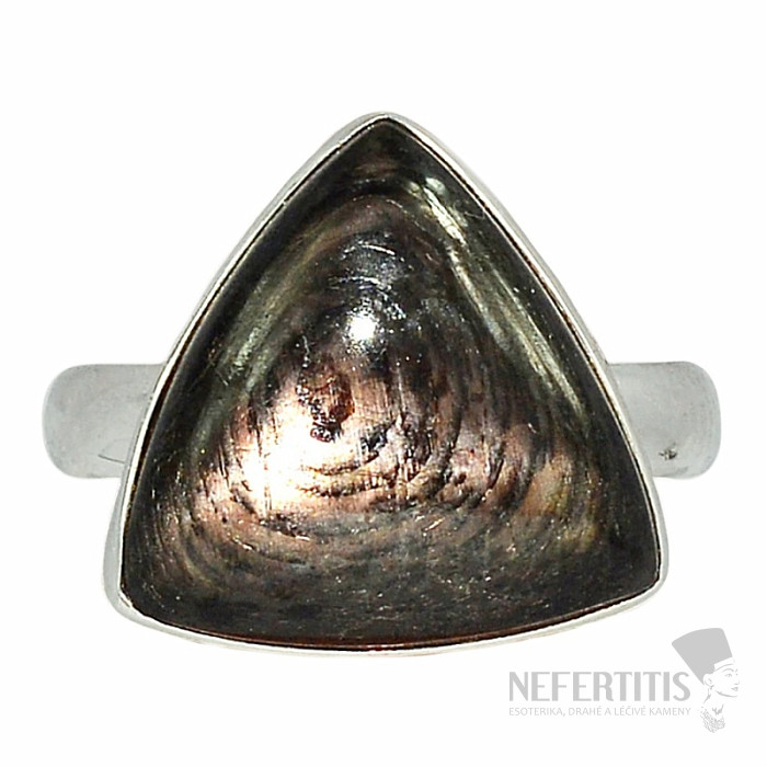 Stříbrný prsten se vzácným hyperstenem. Ag 925. Kupujete přímo vyobrazený šperk. Velikost kamene cca 1,5 cm.