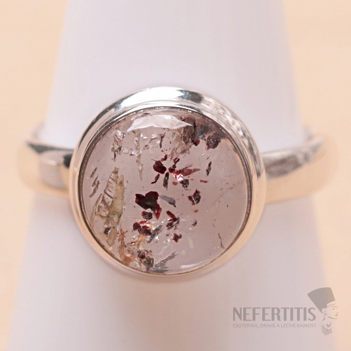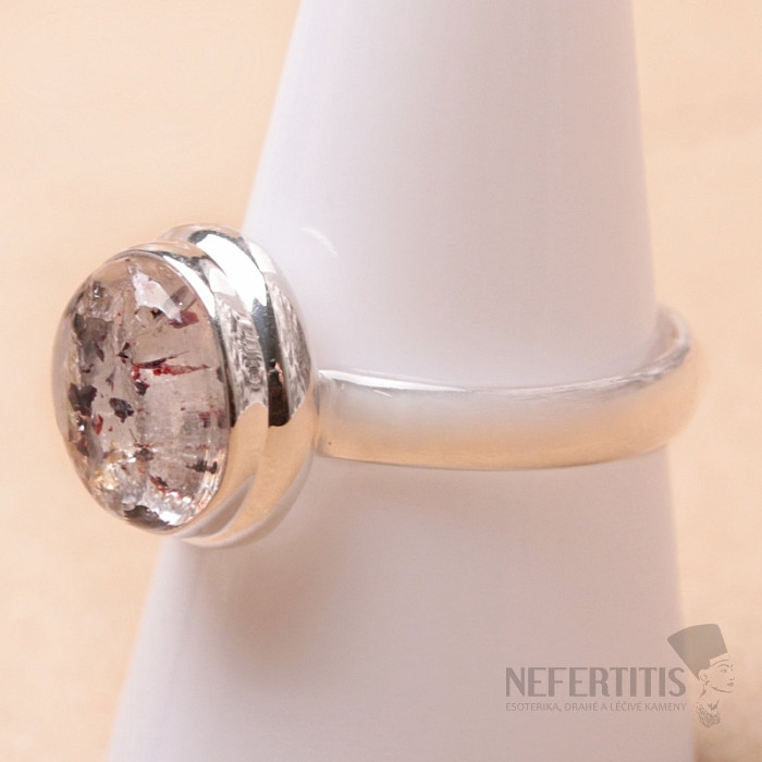 Stříbrný prsten se vzácným křišťálem z lokality Orire. Tento polodrahokam se těží v lokalitě Orire v Nigérii. Orire se dá volně přeložit jako "hodně štěstí", a i proto se tomuto kameni přezdívá křišťál štěstí. Jde o vzácnou kombinace křišťálu s inkluzemi hematitu a lepidokrokitu. Ag 925. Velikost kamene cca 1,2 cm. Kupujete přímo vyobrazený šperk.