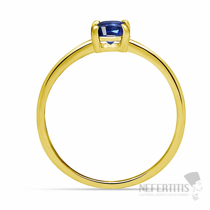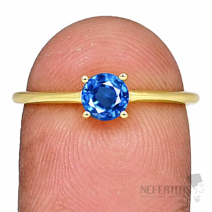Elegantní a jemný, přesto nadčasový stříbrný, pozlacený vermeil, prsten s broušeným modrým kyanitem. Ag 925. Velikost kamene cca 0,4 cm. Ilustrativní fotografie, barva kamene se může mírně lišit od fotografie. Vždy však obdržíte šperk srovnatelné kvality.