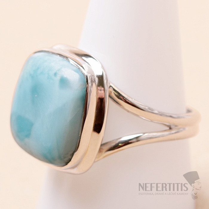 Elegatní prsten stříbro s krásným a velmi kvalitním kabošonem larimaru, jenž připomíná hru slunečních paprsků na hladině moře. Kámen larimaru je pečlivě vybrán se zřetelně modrým vybarvením a kresbou. Velikost larimaru cca 1,7 cm. Ag 925. Kupujete přímo vyobrazený šperk.