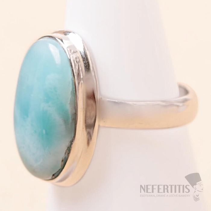 Elegatní prsten stříbro s krásným a velmi kvalitním kabošonem larimaru, jenž připomíná hru slunečních paprsků na hladině moře. Kámen larimaru je pečlivě vybrán se zřetelně modrým vybarvením a kresbou. Velikost larimaru cca 1,9 cm. Ag 925. Kupujete přímo vyobrazený šperk.
