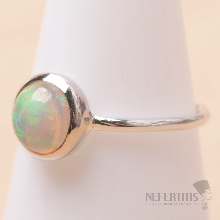 Elegantní stříbrný prsten s kabošonem etiopského opálu. Ag 925. Působivý a elegantní šperk, od pohledu navozující radost a pocity harmonie. Etiopské opály oproti australským opálům doslova hýří až neonově zářivými odlesky barev. Ačkoliv na první pohled na to nevypadají, ohňostroj barev, který z opálu v tomto přívěsku vytryskne při každém dopadu světla, okouzlí nejen vás, ale celé vaše okolí. Velikost kamene cca 0,8 cm. Kupujete přímo vyobrazený šperk.