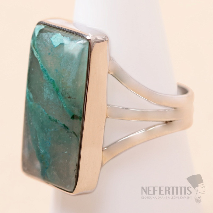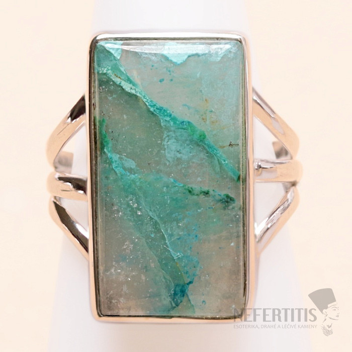 Půvabný stříbrný prsten se vzácným a sběratelsky ceněným přírodním Quantum quattro. Ag 925. Quantum quattro je kombinací čtyř minerálů - shattuckitu, dioptasu, malachitu a chryzokolu. Každý šperk je originální, neopakovatelný a díky barevné kombinaci a uspořádání minerálů podněcuje fantazii, připomíná pohled na Zemi z ptačí perspektivy. Budete mít krásný šperk, který nikdo nepřehlédne, vhodný pro různé příležitosti. Kupujete přímo vyobrazený šperk. Velikost kamene cca 2,2 cm.