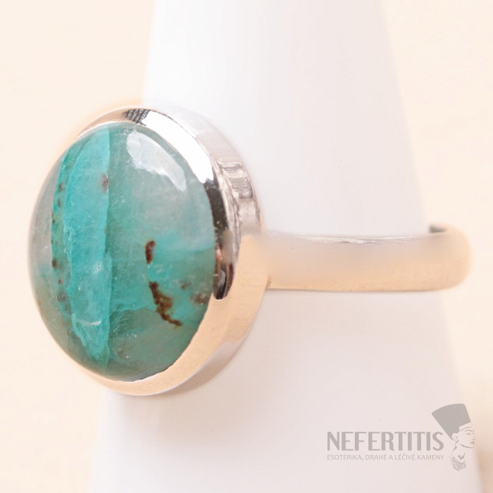 Půvabný stříbrný prsten se vzácným a sběratelsky ceněným přírodním Quantum quattro. Ag 925. Quantum quattro je kombinací čtyř minerálů - shattuckitu, dioptasu, malachitu a chryzokolu. Každý šperk je originální, neopakovatelný a díky barevné kombinaci a uspořádání minerálů podněcuje fantazii, připomíná pohled na Zemi z ptačí perspektivy. Budete mít krásný šperk, který nikdo nepřehlédne, vhodný pro různé příležitosti. Kupujete přímo vyobrazený šperk. Velikost kamene cca 1,6 cm.