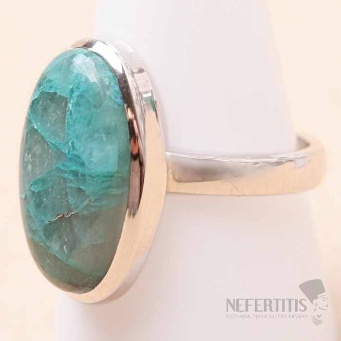 Půvabný stříbrný prsten se vzácným a sběratelsky ceněným přírodním Quantum quattro. Ag 925. Quantum quattro je kombinací čtyř minerálů - shattuckitu, dioptasu, malachitu a chryzokolu. Každý šperk je originální, neopakovatelný a díky barevné kombinaci a uspořádání minerálů podněcuje fantazii, připomíná pohled na Zemi z ptačí perspektivy. Budete mít krásný šperk, který nikdo nepřehlédne, vhodný pro různé příležitosti. Kupujete přímo vyobrazený šperk. Velikost kamene cca 2,1 cm.