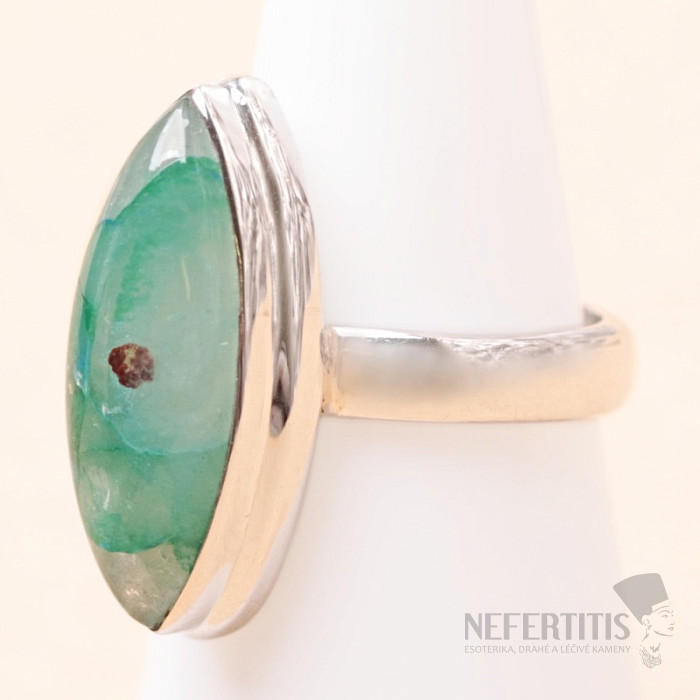 Půvabný stříbrný prsten se vzácným a sběratelsky ceněným přírodním Quantum quattro. Ag 925. Quantum quattro je kombinací čtyř minerálů - shattuckitu, dioptasu, malachitu a chryzokolu. Každý šperk je originální, neopakovatelný a díky barevné kombinaci a uspořádání minerálů podněcuje fantazii, připomíná pohled na Zemi z ptačí perspektivy. Budete mít krásný šperk, který nikdo nepřehlédne, vhodný pro různé příležitosti. Kupujete přímo vyobrazený šperk. Velikost kamene cca 2,2 cm.