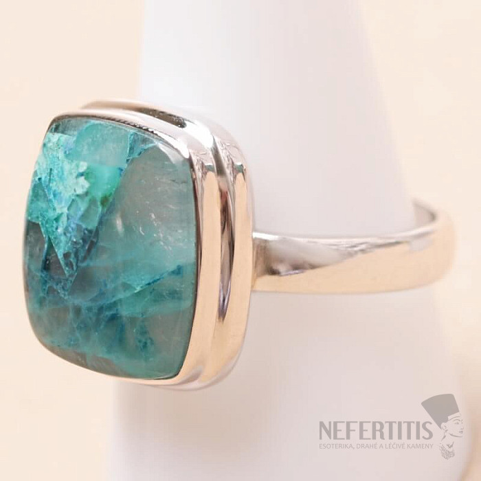 Půvabný stříbrný prsten se vzácným a sběratelsky ceněným přírodním Quantum quattro. Ag 925. Quantum quattro je kombinací čtyř minerálů - shattuckitu, dioptasu, malachitu a chryzokolu. Každý šperk je originální, neopakovatelný a díky barevné kombinaci a uspořádání minerálů podněcuje fantazii, připomíná pohled na Zemi z ptačí perspektivy. Budete mít krásný šperk, který nikdo nepřehlédne, vhodný pro různé příležitosti. Kupujete přímo vyobrazený šperk. Velikost kamene cca 1,7 cm.
