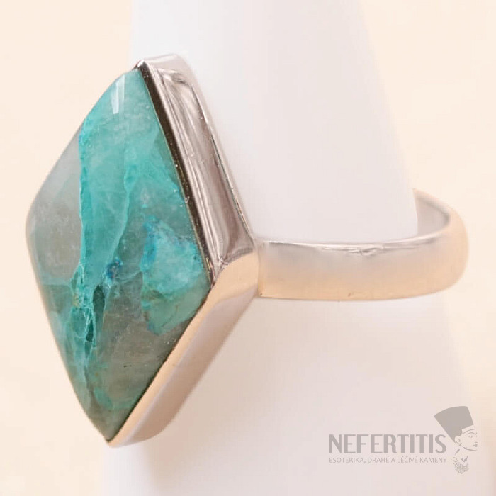 Půvabný stříbrný prsten se vzácným a sběratelsky ceněným přírodním Quantum quattro. Ag 925. Quantum quattro je kombinací čtyř minerálů - shattuckitu, dioptasu, malachitu a chryzokolu. Každý šperk je originální, neopakovatelný a díky barevné kombinaci a uspořádání minerálů podněcuje fantazii, připomíná pohled na Zemi z ptačí perspektivy. Budete mít krásný šperk, který nikdo nepřehlédne, vhodný pro různé příležitosti. Kupujete přímo vyobrazený šperk. Velikost kamene cca 2,2 cm.
